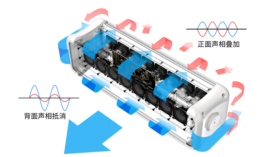 (圖注:雙面發(fā)聲,背面揚(yáng)聲器進(jìn)行回聲抵消)