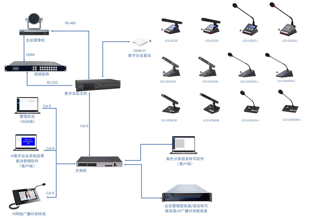 系統(tǒng)支持六類(lèi)網(wǎng)線手拉手連接,同時(shí)支持2.4G/5.2G/5.8G三頻WIFI組網(wǎng),同時(shí)支持最大10人發(fā)言,有線無(wú)線單元均支持會(huì)議發(fā)言、攝像追蹤、會(huì)議簽到、投票表決、EQ調(diào)節(jié)等功能。