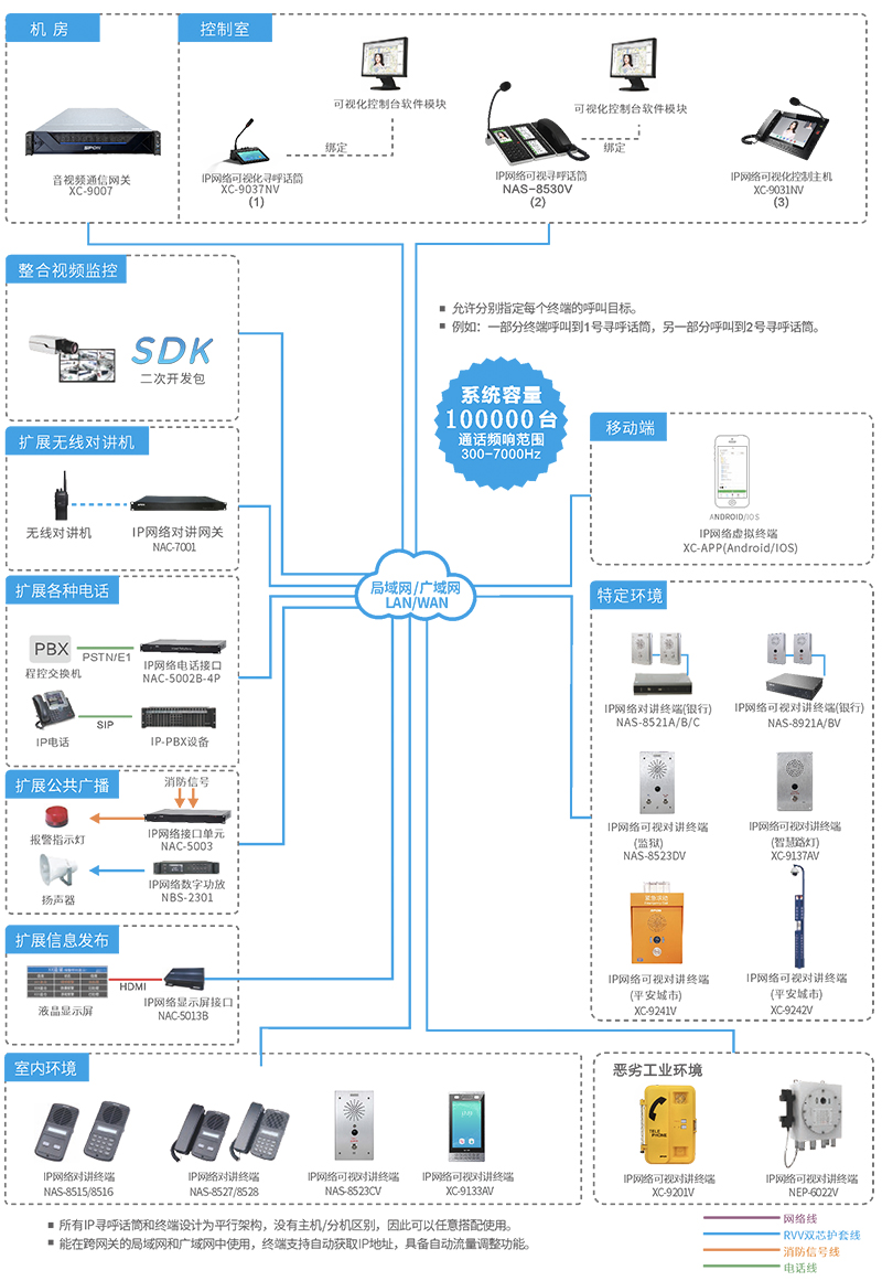 不僅僅對(duì)講,IP內(nèi)部通訊通過(guò)整合公共廣播,滿足點(diǎn)對(duì)點(diǎn)、點(diǎn)對(duì)多點(diǎn)的通信。隨著時(shí)代發(fā)展,內(nèi)部通訊系統(tǒng)在互聯(lián)網(wǎng)帶寬快速增長(zhǎng)情況下,可視通話需求得以實(shí)現(xiàn)。世邦提供全新可視系列對(duì)講終端,達(dá)到面對(duì)面般溝通效果,同時(shí)還兼容標(biāo)準(zhǔn)SIP協(xié)議,與VoIP電話系統(tǒng)互聯(lián)互通,翻開了新的篇章。6、同時(shí)可用作報(bào)警系統(tǒng)和廣播系統(tǒng)(與世邦I(lǐng)P網(wǎng)絡(luò)公共廣播設(shè)備兼容);